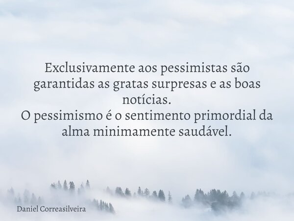 Exclusivamente aos pessimistas são garantidas as gratas surpresas e as boas notícias. O pessimismo é o sentimento primordial da alma minimamente saudável.
