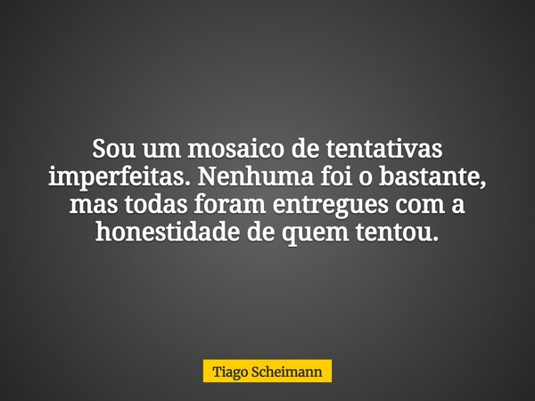 Sou um mosaico de tentativas imperfeitas. Nenhuma foi o bastante, mas todas foram entregues com a honestidade de quem tentou.