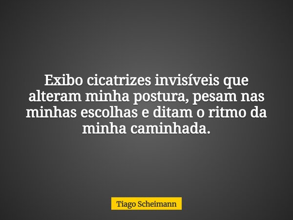 Exibo cicatrizes invisíveis que alteram minha postura, pesam nas minhas escolhas e ditam o ritmo da minha caminhada.