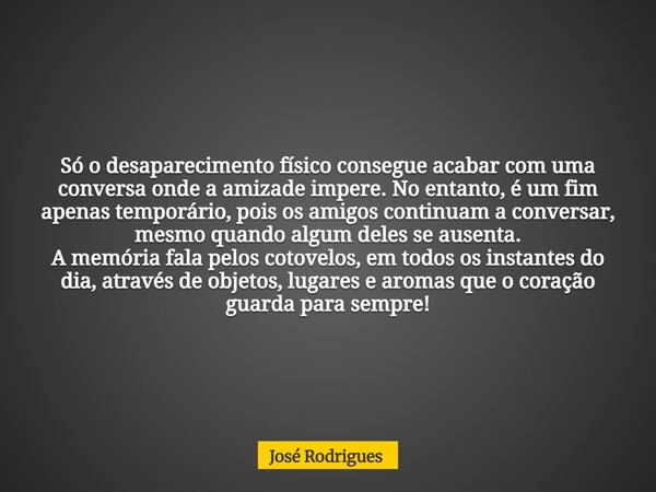 Só o desaparecimento físico consegue acabar com uma conversa onde a amizade impere. No entanto, é um fim apenas temporário, pois os amigos continuam a conversar, mesmo quando algum deles se ausenta.