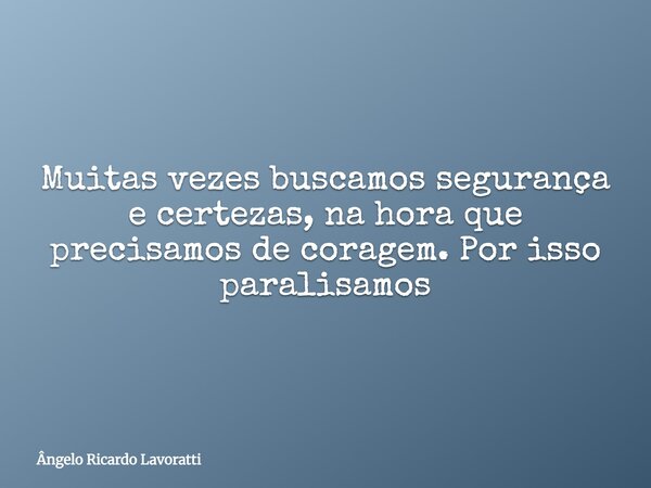 Muitas vezes buscamos segurança e certezas, na hora que precisamos de coragem. Por isso paralisamos
