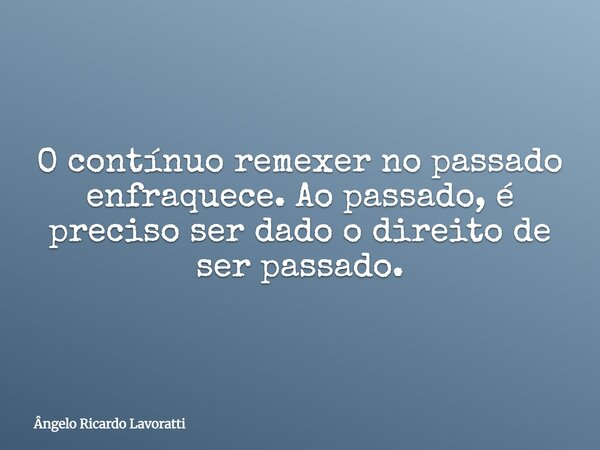 O contínuo remexer no passado enfraquece. Ao passado, é preciso ser dado o direito de ser passado.