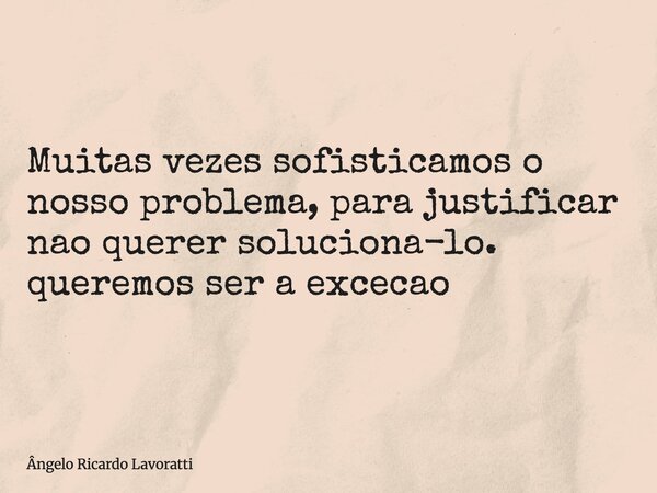 Muitas vezes sofisticamos o nosso problema, para justificar nao querer soluciona-lo. queremos ser a excecao