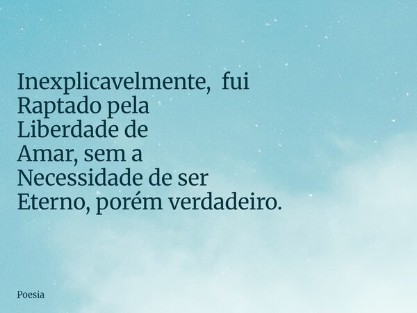 Inexplicavelmente, fui Raptado pela Liberdade de Amar, sem a Necessidade de ser Eterno, porém verdadeiro.
