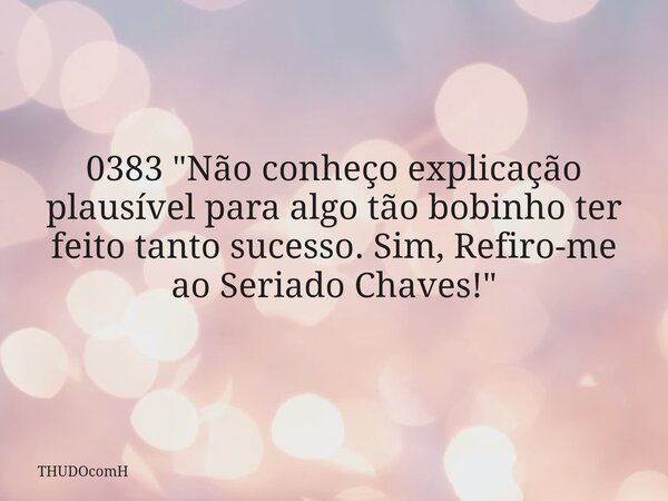 0383 "Não conheço explicação plausível para algo tão bobinho ter feito tanto sucesso. Sim, Refiro-me ao Seriado Chaves!"