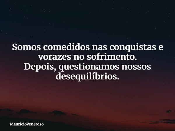 Somos comedidos nas conquistas e vorazes no sofrimento. Depois, questionamos nossos desequilíbrios.