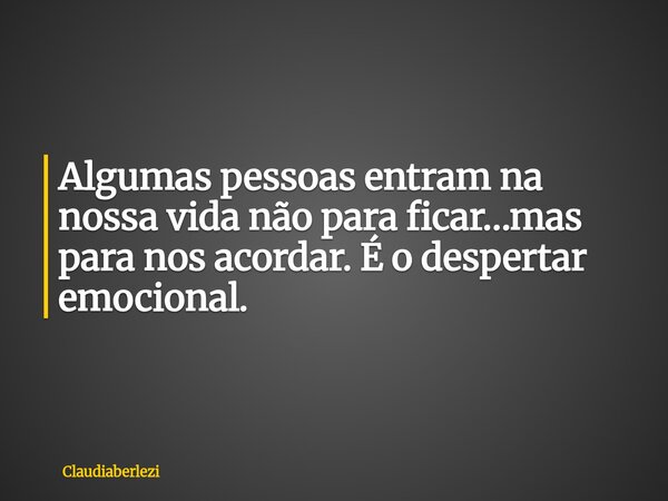 Algumas pessoas entram na nossa vida não para ficar…mas para nos acordar. É o despertar emocional.