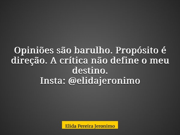 Opiniões são barulho. Propósito é direção. A crítica não define o meu destino. Insta: @elidajeronimo