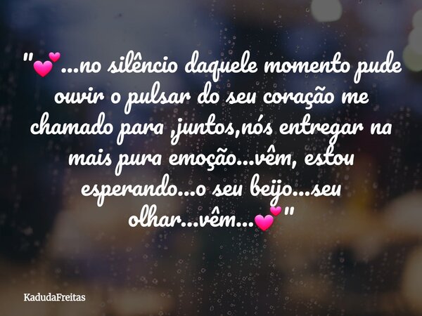"đ...no silĂȘncio daquele momento pude ouvir o pulsar do seu coração me chamado para ,juntos,nĂłs entregar na mais pura emoção...vĂȘm, estou esperando...o seu beijo...seu olhar...â vĂȘm...đ"
