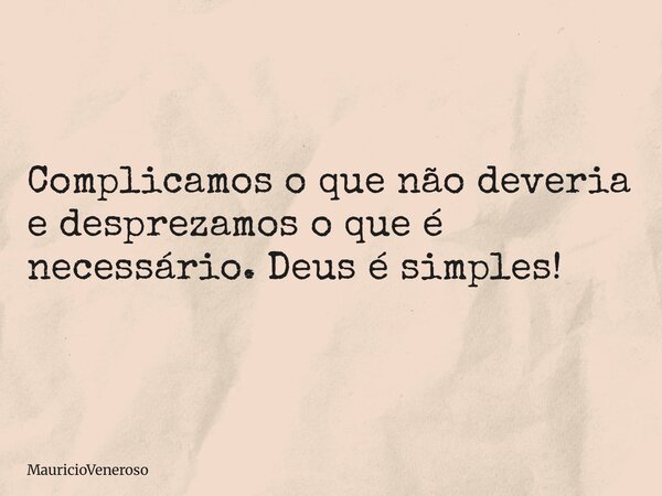 Complicamos o que não deveria e desprezamos o que é necessário. Deus é simples!