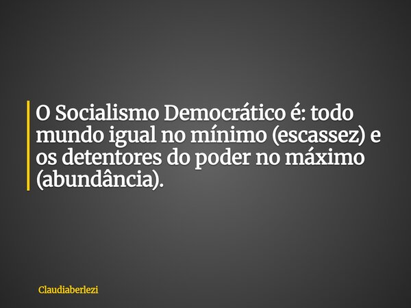 O Socialismo Democrático é: todo mundo igual no mínimo (escassez) e os detentores do poder no máximo (abundância).