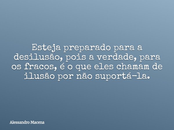 Esteja preparado para a desilusão, pois a verdade, para os fracos, é o que eles chamam de ilusão por não suportá-la.