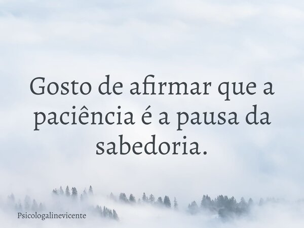 Gosto de afirmar que a paciência é a pausa da sabedoria.