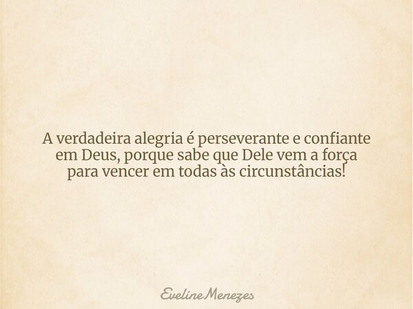 A verdadeira alegria é perseverante e confiante em Deus, porque sabe que Dele vem a força para vencer em todas às circunstâncias!