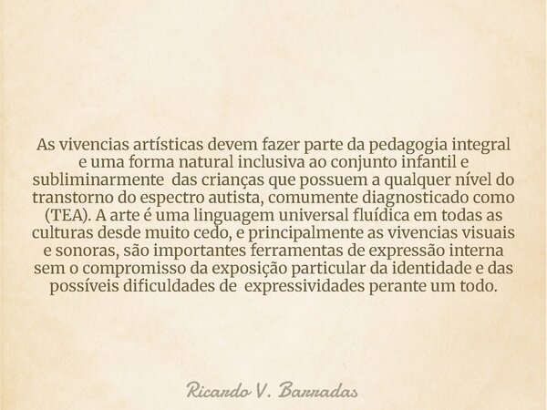 As vivencias artísticas devem fazer... Ricardo V. Barradas