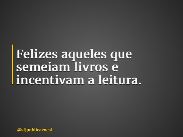 Felizes aqueles que semeiam livros e incentivam a leitura.