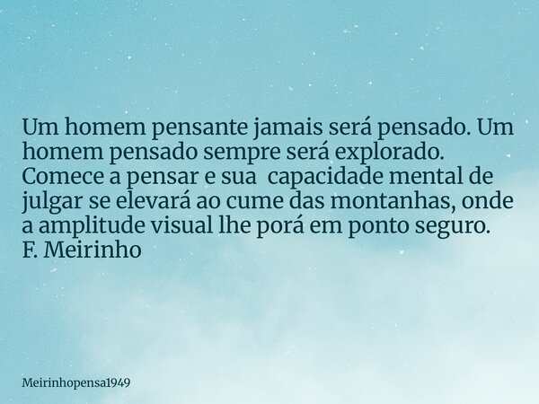 Um homem pensante jamais será pensado.... Meirinhopensa1949