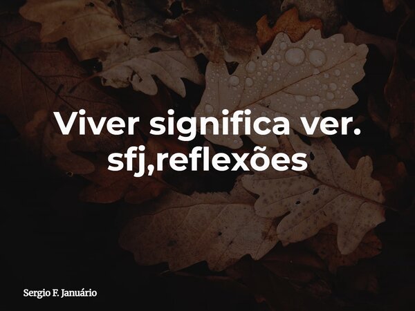 Viver significa ver. sfj,reflexões