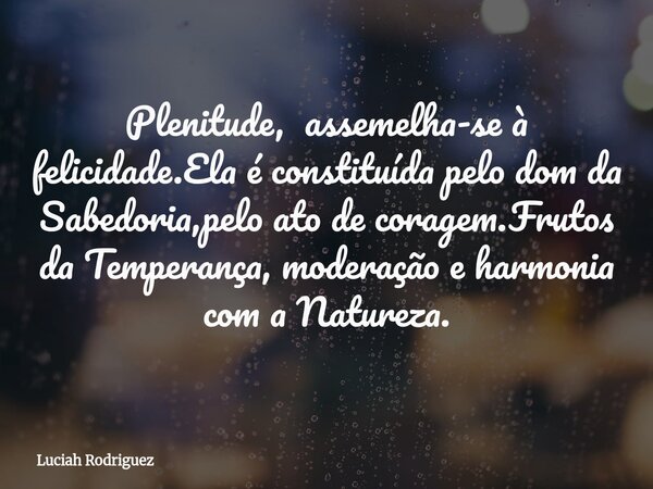 Plenitude, assemelha-se à felicidade.Ela é constituída pelo dom da Sabedoria,pelo ato de coragem.Frutos da Temperança, moderação e harmonia com a Natureza.