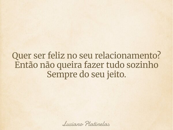 Quer ser feliz no seu relacionamento? Então não queira fazer tudo sozinho Sempre do seu jeito.