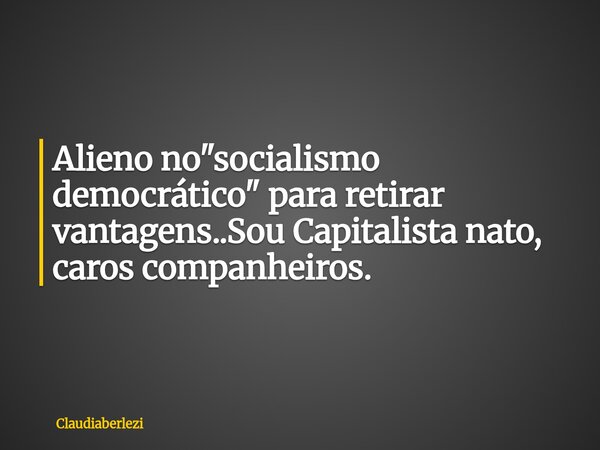Alieno no "socialismo democrático" para retirar vantagens..Sou Capitalista nato, caros companheiros.