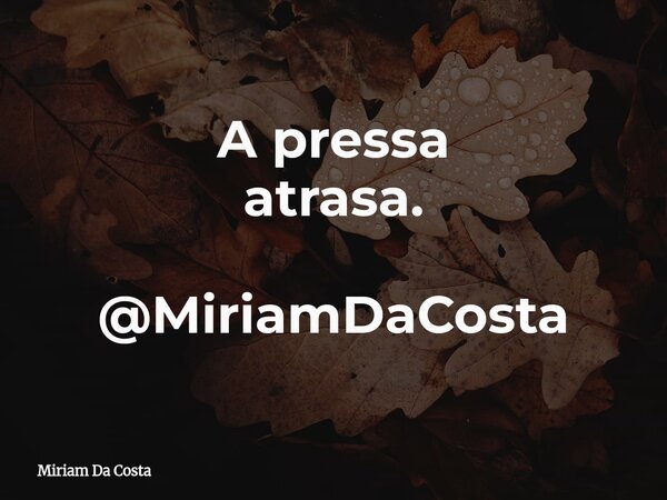 A pressa atrasa. @MiriamDaCosta