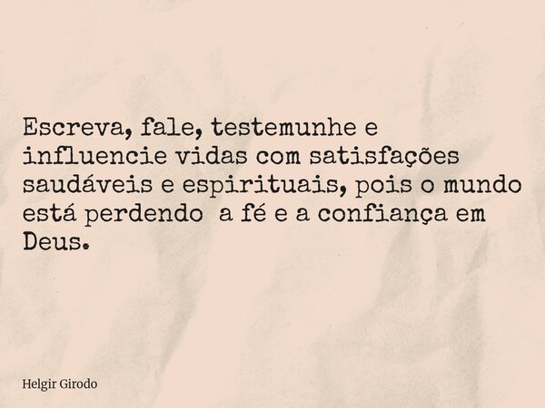 Escreva, fale, testemunhe e influencie vidas com satisfações saudáveis e espirituais, pois o mundo está perdendo a fé e a confiança em Deus.