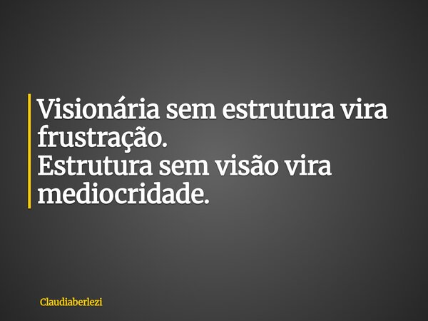 Visionária sem estrutura vira frustração. Estrutura sem visão vira mediocridade.