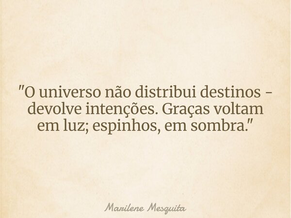 "O universo não distribui destinos - devolve intenções. Graças voltam em luz; espinhos, em sombra."