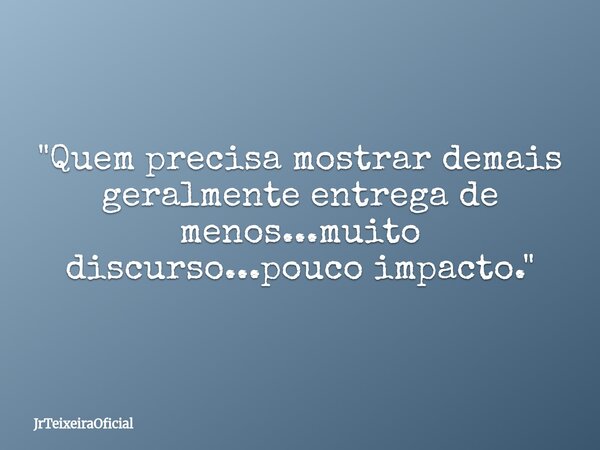 "Quem precisa mostrar demais geralmente entrega de menos...muito discurso...pouco impacto."