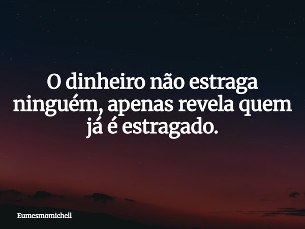 O dinheiro não estraga ninguém, apenas revela quem já é estragado.