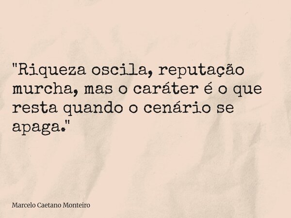 "Riqueza oscila, reputação murcha, mas o caráter é o que resta quando o cenário se apaga."