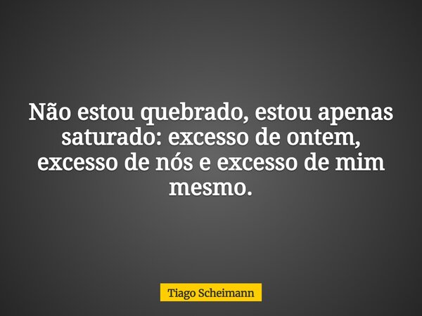 Não estou quebrado, estou apenas saturado: excesso de ontem, excesso de nós e excesso de mim mesmo.