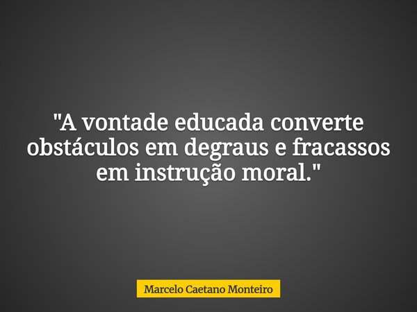 "A vontade educada converte obstáculos em degraus e fracassos em instrução moral."