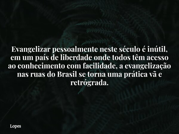Evangelizar pessoalmente neste século é inútil, em um país de liberdade onde todos têm acesso ao conhecimento com facilidade, a evangelização nas ruas do Brasil se torna uma prática vã e retrógrada.