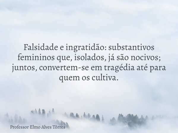 Falsidade e ingratidão: substantivos femininos que, isolados, já são nocivos; juntos, convertem-se em tragédia até para quem os cultiva.
