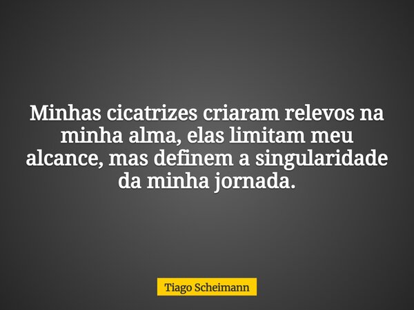 Minhas cicatrizes criaram relevos na minha alma, elas limitam meu alcance, mas definem a singularidade da minha jornada.