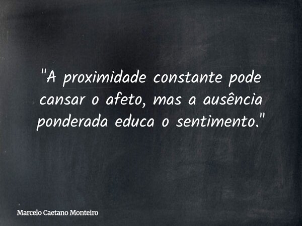 "A proximidade constante pode cansar o afeto, mas a ausência ponderada educa o sentimento."
