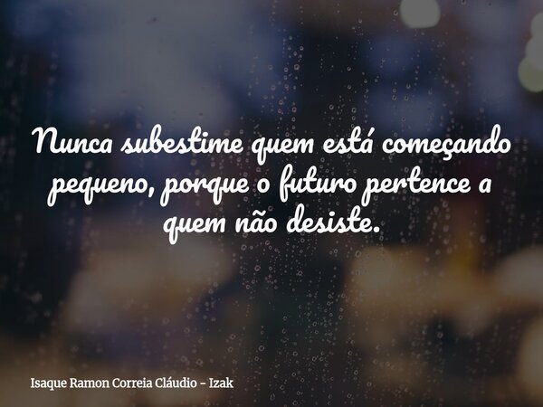Nunca subestime quem está começando pequeno, porque o futuro pertence a quem não desiste.