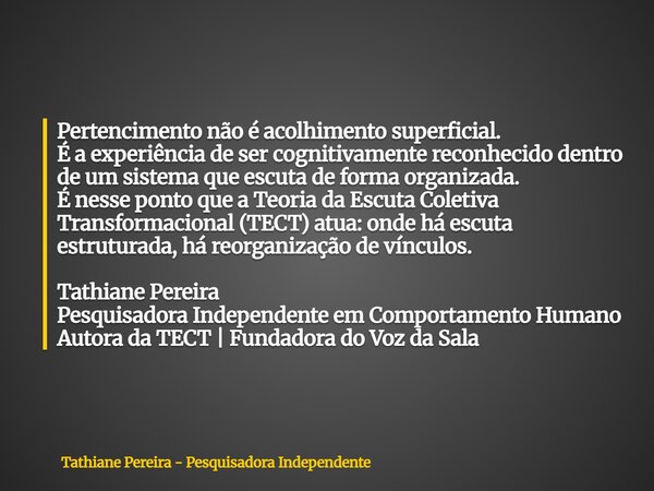 Pertencimento não é acolhimento... Tathiane Pereira -...