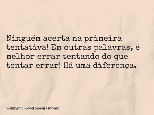 Ninguém acerta na primeira tentativa! Em outras palavras, é melhor errar tentando do que tentar errar! Há uma diferença.