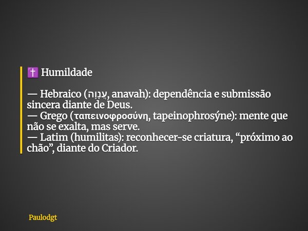 — Hebraico (עֲנָוָה, anavah): dependência e submissão sincera diante de Deus.