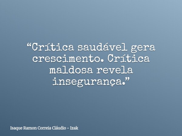 “Crítica saudável gera crescimento. Crítica maldosa revela insegurança.”