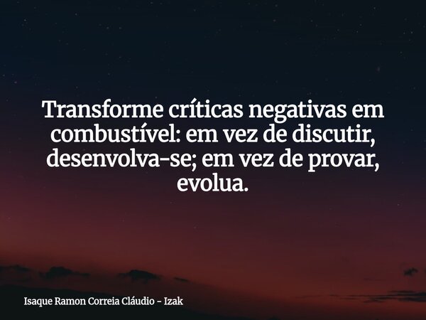 Transforme críticas negativas em combustível: em vez de discutir, desenvolva-se; em vez de provar, evolua.