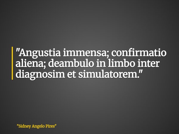 "Angustia immensa; confirmatio aliena; deambulo in limbo inter diagnosim et simulatorem."