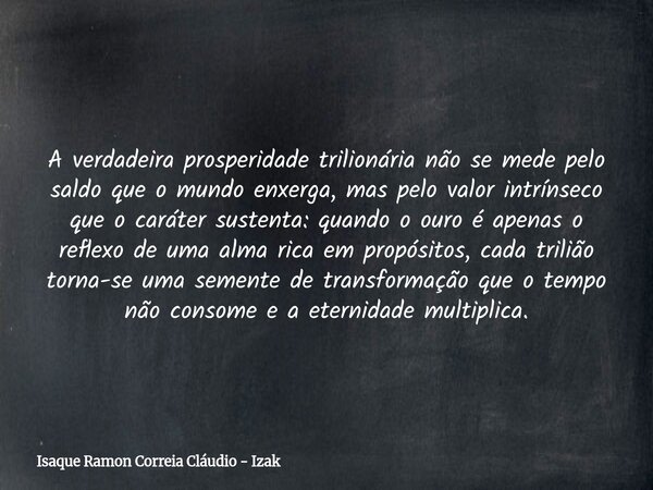 A verdadeira prosperidade trilionária não se mede pelo saldo que o mundo enxerga, mas pelo valor intrínseco que o caráter sustenta: quando o ouro é apenas o reflexo de uma alma rica em propósitos, cada trilião torna-se uma semente de transformação que o tempo não consome e a eternidade multiplica.