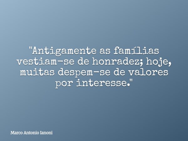"Antigamente as famílias vestiam-se de honradez; hoje, muitas despem-se de valores por interesse."