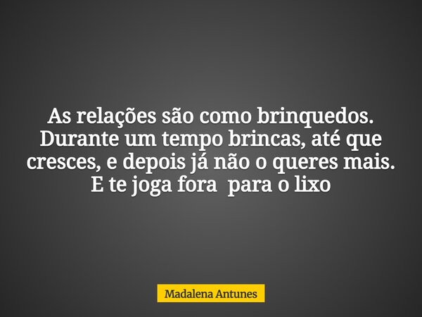 As relações são como brinquedos. Durante um tempo brincas, até que cresces, e depois já não o queres mais. E te joga fora para o lixo