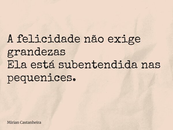 A felicidade não exige grandezas Ela está subentendida nas pequenices.