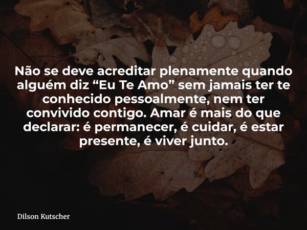 Não se deve acreditar plenamente quando alguém diz “Eu Te Amo” sem jamais ter te conhecido pessoalmente, nem ter convivido contigo. Amar é mais do que declarar: é permanecer, é cuidar, é estar presente, é viver junto.